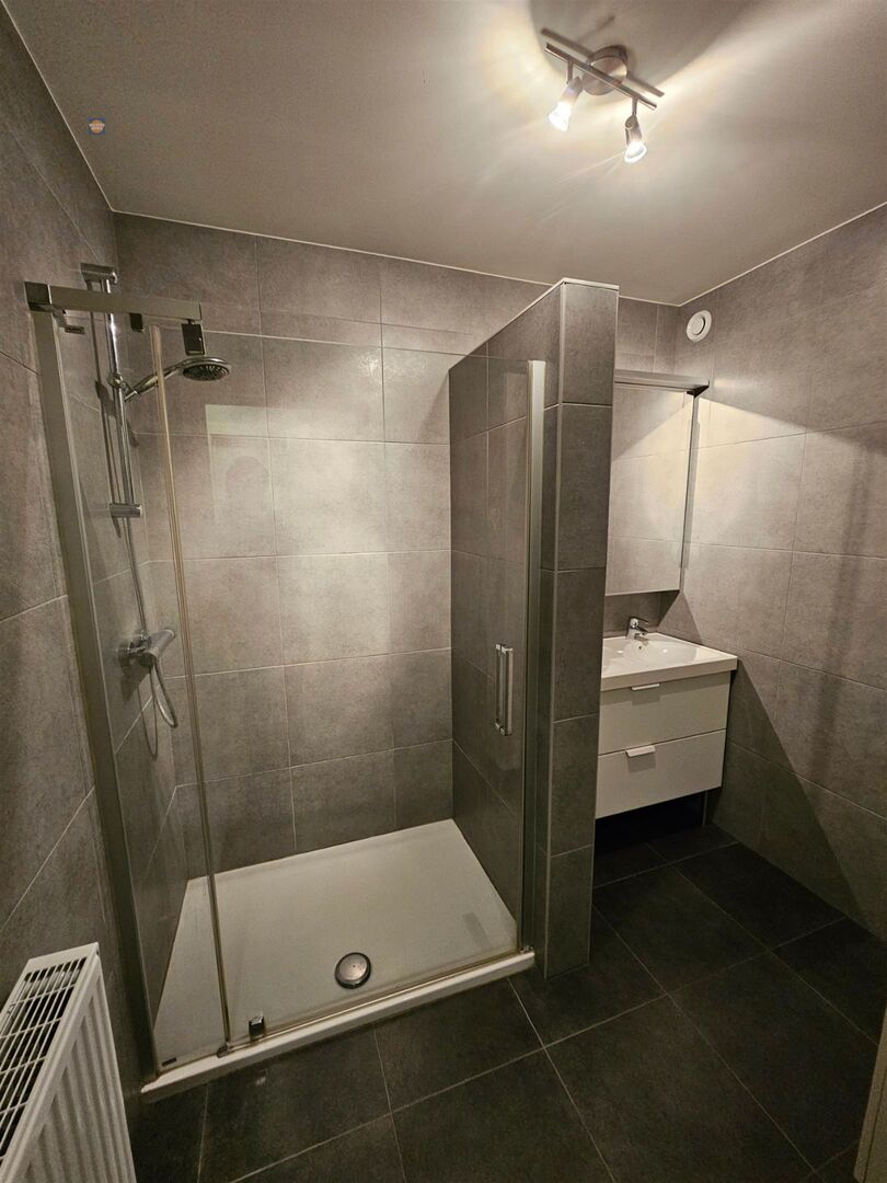 De stijlvolle badkamer is volledig betegeld en voorzien van een inloopdouche en dubbele wastafel. Ook beschikt het appartement over een aparte toilet.