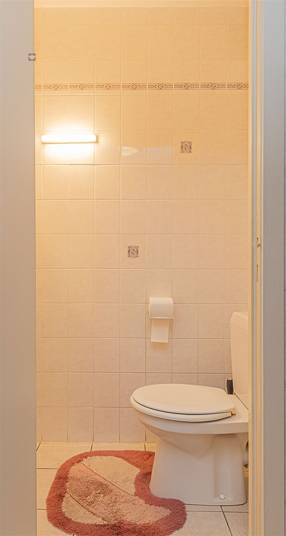 Verder beschikt het appartement over een praktische berging, een apart gastentoilet, een ruime badkamer en een extra douchekamer. De twee volwaardige slaapkamers geven beide uit op het achterliggende terras, dat uitkijkt op de rustige en groene binnentuin.