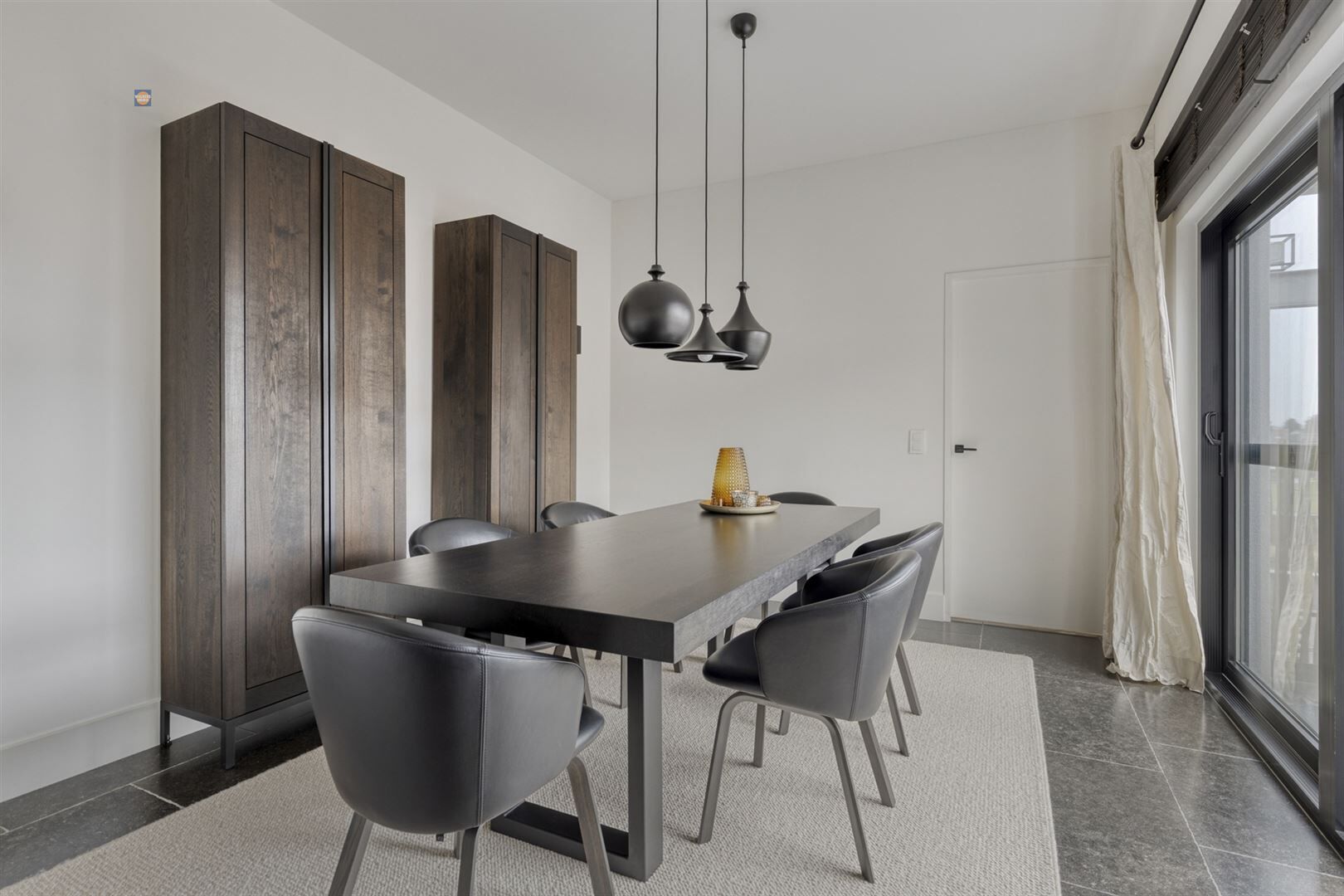 De indeling is als volgt: ruime inkomhal met gastentoilet, bureau of kinderkamer, berging , lichtrijke leefruimte met design gashaard, dimbare sfeerverlichting, hypergeïnstalleerde keuken met hoogwaardige afwerking en een aangrenzende eetkamer met uitzicht op het overdekte, automatische terras.