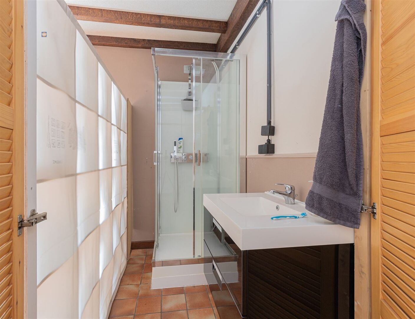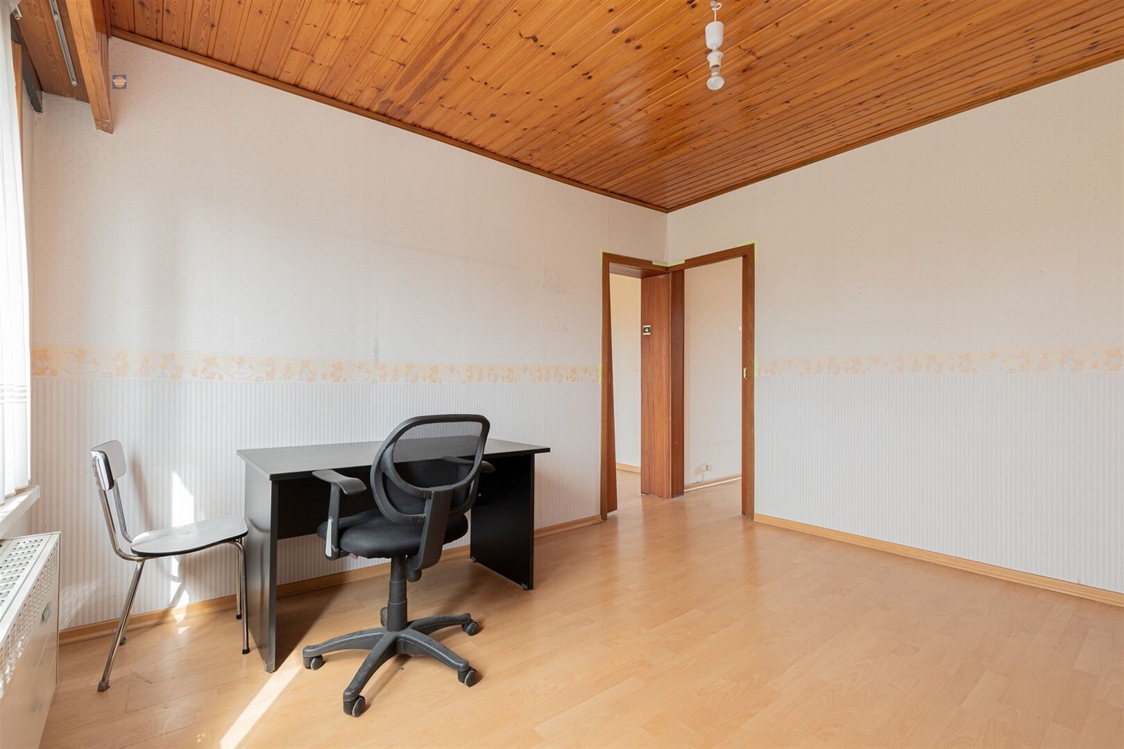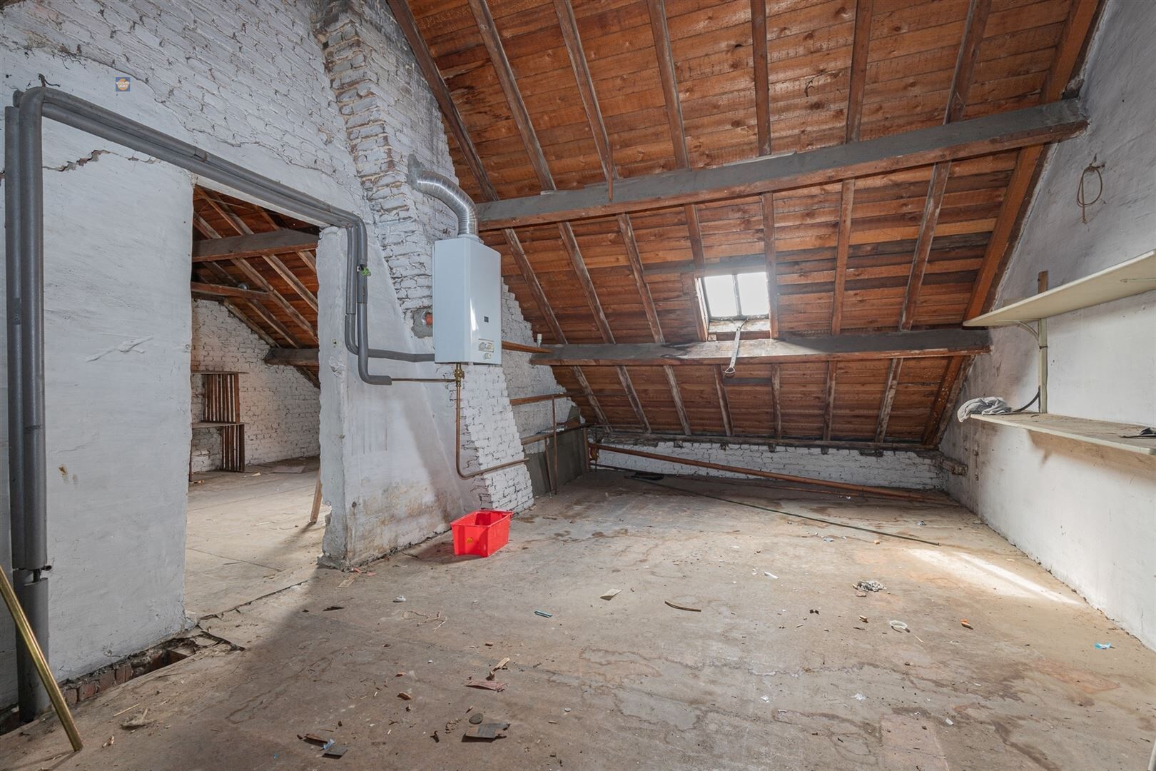 Op de eerste verdieping zijn er drie volwaardige slaapkamers en een badkamer. Achteraan het perceel tref je een ruime opslagruimte/magazijn aan, voorzien van een verdiep erbovenop, ideaal als atelier, bijkomende opslag of hobbyruimte.