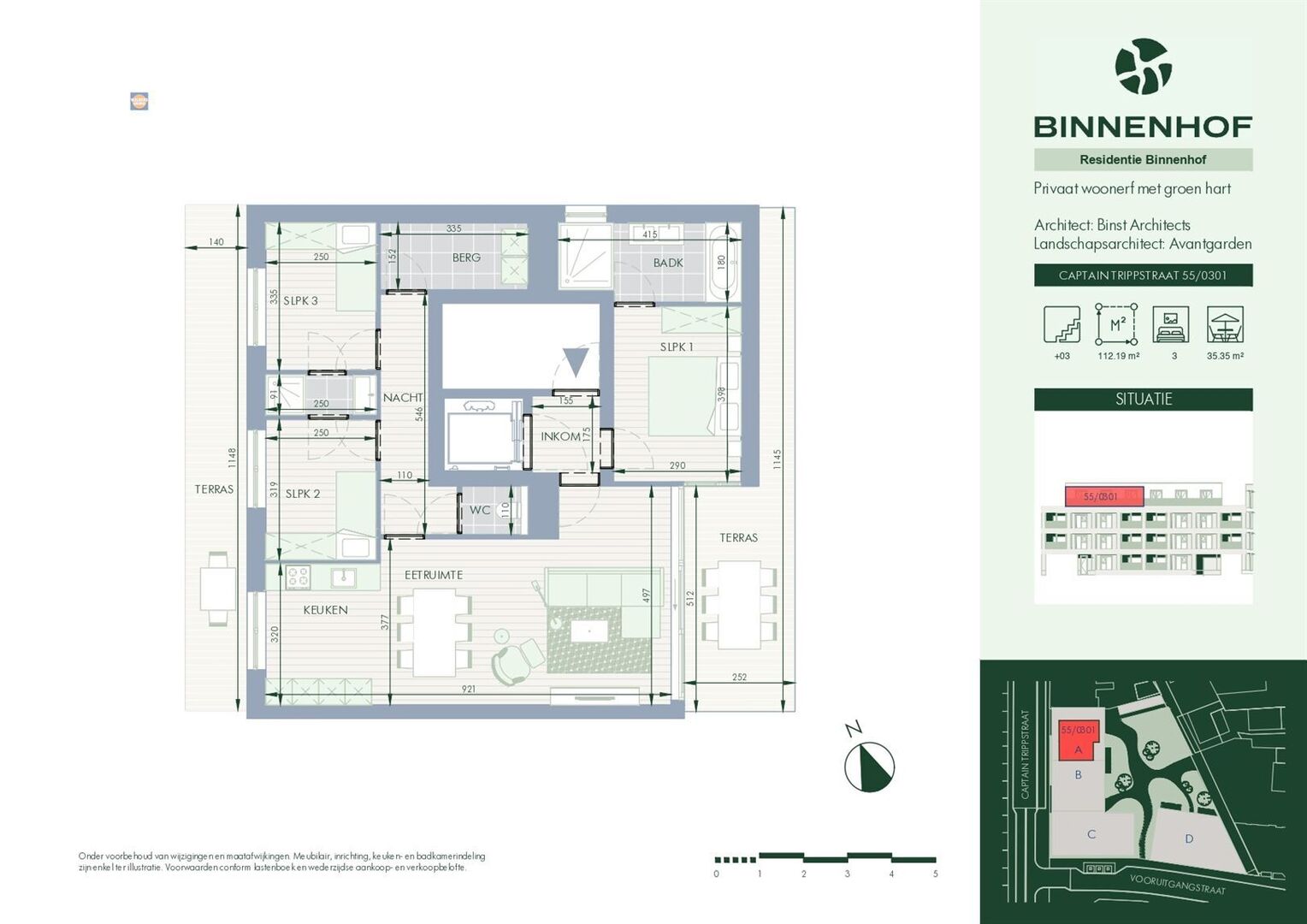 Dit uitzonderlijk appartement op de derde verdieping biedt een royale leefruimte met open keuken, drie comfortabele slaapkamers, badkamer, berging en apart toilet. De twee terrassen creƫren een prachtige buitenruimte met maximale privacy.