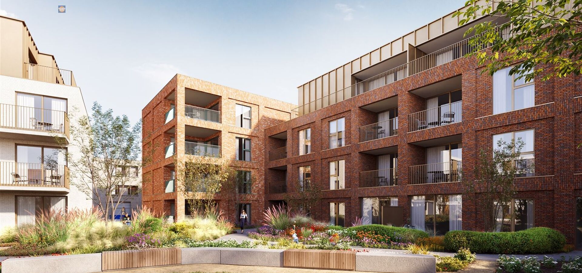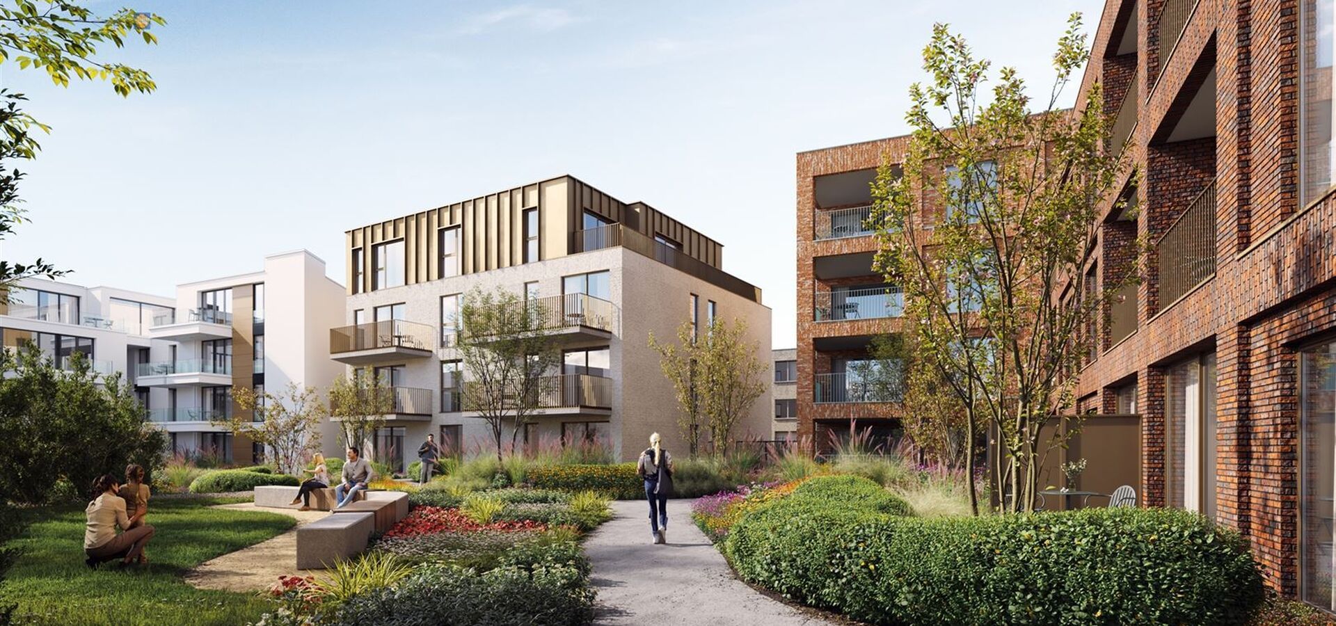 Centraal ligt een veilige, private binnentuin een groenoase die uitnodigt tot ontspanning en ontmoeting. De ondergrondse parking houdt het terrein volledig autovrij. Het project zet bovendien sterk in op duurzaamheid met geothermie, vloerverwarming en uitstekende isolatie.
